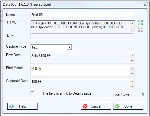 - Sometimes column layout changes from one item to another. The same text field can be represented using different formatting options or using different HTML elements. Selecting such an element as a sample will cause missing data. In this case, instead of selecting a text element directly, select its parent container, which can be a table cell (TD) or a DIV element.